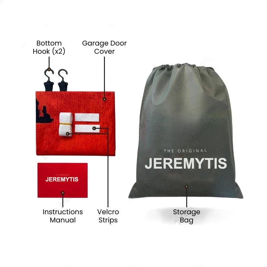 Every JEREMYTIS now comes with a FREE upgraded installation kit that includes our new stitched-in flat elastic bands for the bottom corners and Velcro rolls for the top. Simply stick the top of your Halloween garage door cover to your door using Velcro. Then, hook the elastic bands to the second hinge behind your garage door, and voilà! You're good to go faster than a witch on a broomstick!